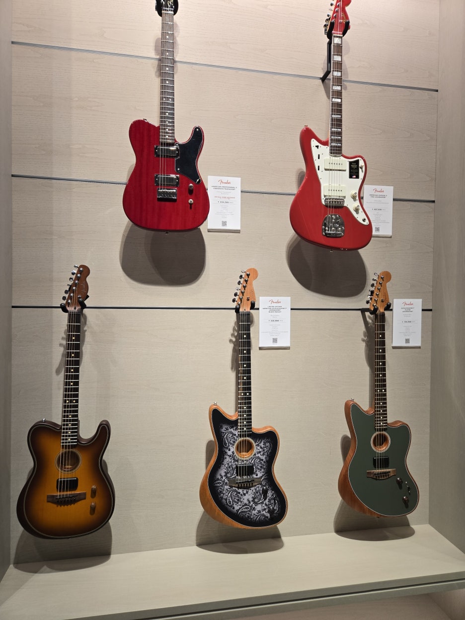 3층에 마스터빌더 기타와 하이엔드 모델이 있는데, 사람이 너무 북적이고